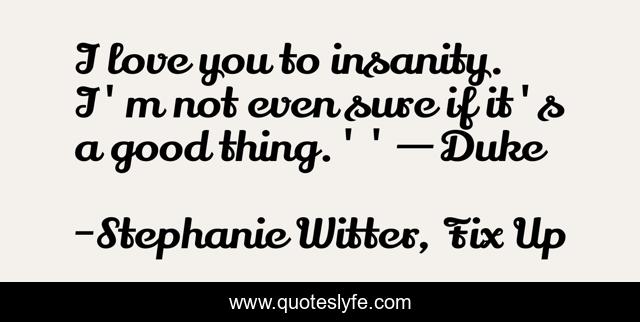 "Stephanie Witter, Fix Up Quotes." Quoteslyfe.com, 2025. Mon. 08 Dec. 2025. <https://www.quoteslyfe.com/quote/I-love-you-to-insanity-I-m-155271>.