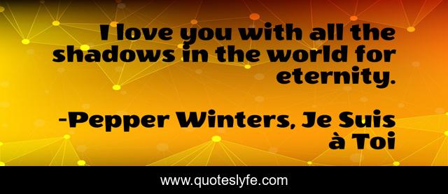This page presents the quote "I love you with all the shadows in the world for eternity.". Author of this quote is Pepper Winters, Je Suis à Toi. .