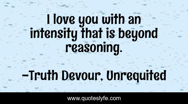 This page presents the quote "I love you with an intensity that is beyond reasoning.". Author of this quote is Truth Devour, Unrequited. This quote is about faith, love, hope, lust, sated, romance, dreams, affection, wantin,.