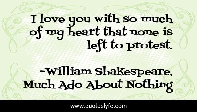 This page presents the quote "I love you with so much of my heart that none is left to protest.". Author of this quote is William Shakespeare, Much Ado About Nothing. This quote is about love, shakespeare, affection,.