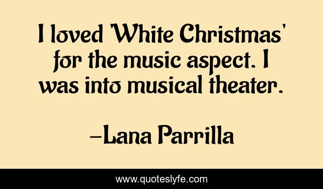 This page presents the quote "I loved 'White Christmas' for the music aspect. I was into musical theater.". Author of this quote is Lana Parrilla. This quote is about loved, white, music,.