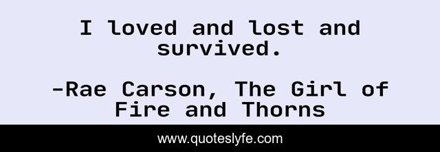 "Rae Carson, The Girl of Fire and Thorns Quotes." Quoteslyfe.com, 2025. Sun. 07 Dec. 2025. <https://www.quoteslyfe.com/quote/I-loved-and-lost-and-survived-123072>.