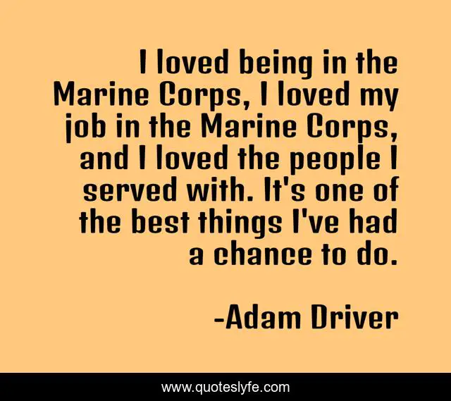 "Adam Driver Quotes." Quoteslyfe.com, 2025. Mon. 08 Dec. 2025. <https://www.quoteslyfe.com/quote/I-loved-being-in-the-Marine-Corps-305869>.