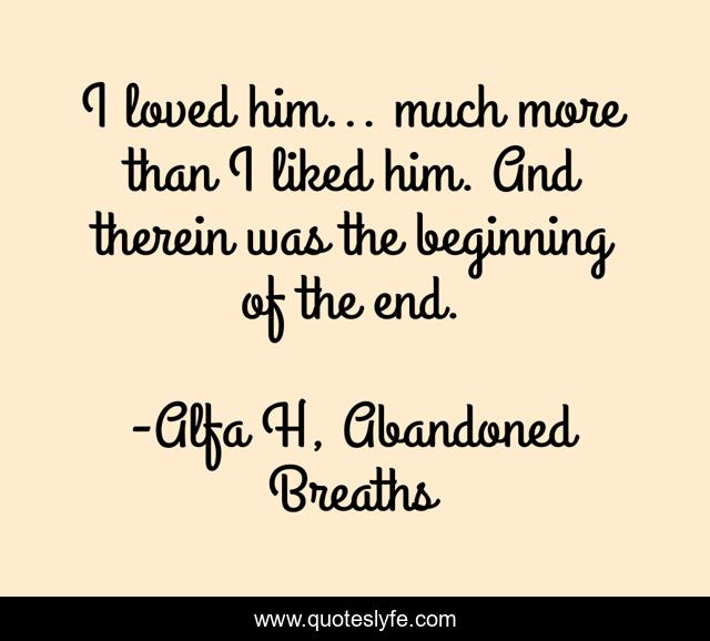 This page presents the quote "I loved him... much more than I liked him. And therein was the beginning of the end.". Author of this quote is Alfa H, Abandoned Breaths. This quote is about relationships, love, like, affection, poetry,.