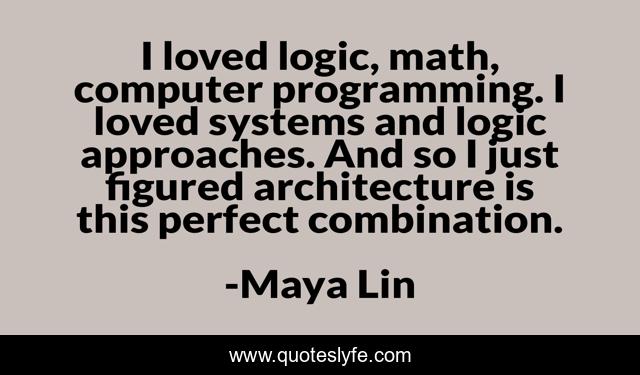This page presents the quote "I loved logic, math, computer programming. I loved systems and logic approaches. And so I just figured architecture is this perfect combination.". Author of this quote is Maya Lin. This quote is about perfect, loved, logic,.