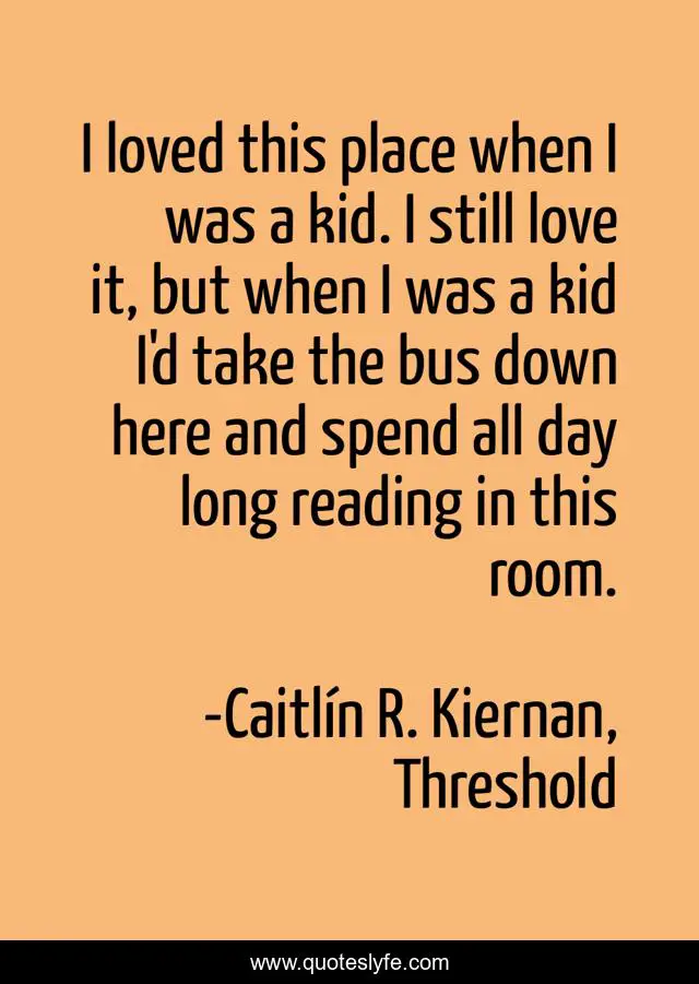 This page presents the quote "I loved this place when I was a kid. I still love it, but when I was a kid I'd take the bus down here and spend all day long reading in this room.". Author of this quote is Caitlín R. Kiernan, Threshold. .