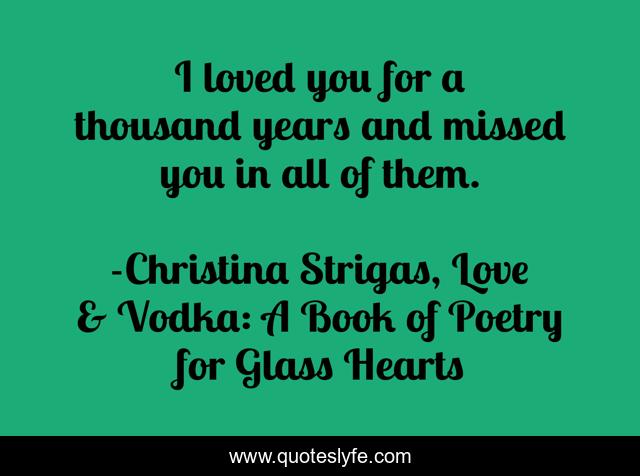 This page presents the quote "I loved you for a thousand years and missed you in all of them.". Author of this quote is Christina Strigas, Love & Vodka: A Book of Poetry for Glass Hearts. This quote is about poets, love, love-sayings, poem-in-your-pocket-day, poetry, poetry-on-love, love-affair, poet, poems,.