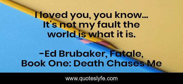 This page presents the quote "I loved you, you know... It's not my fault the world is what it is.". Author of this quote is Ed Brubaker, Fatale, Book One: Death Chases Me. This quote is about ed-brubaker, love, sean-phillips, fatale, world, affection,.