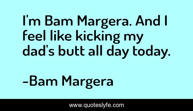 This page presents the quote "I'm Bam Margera. And I feel like kicking my dad's butt all day today.". Author of this quote is Bam Margera. This quote is about feel, day, today,.