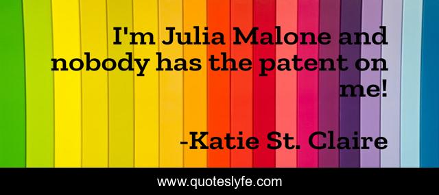 This page presents the quote "I'm Julia Malone and nobody has the patent on me!". Author of this quote is Katie St. Claire. This quote is about humorous, enthusiasm, inspirational,.