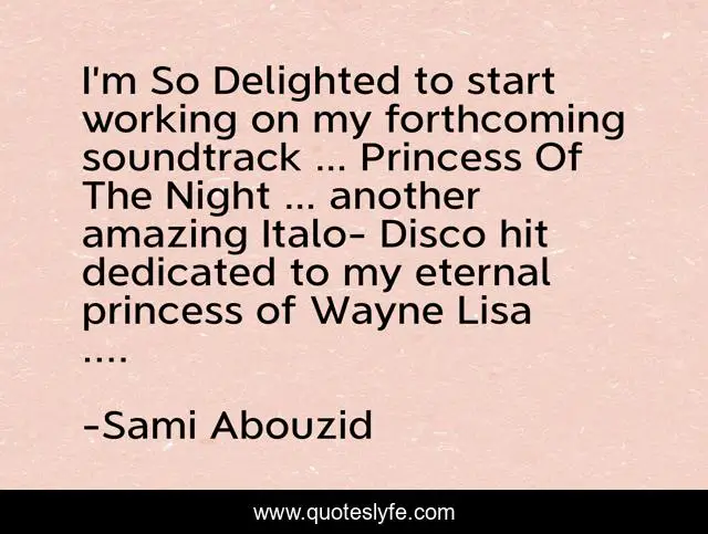 This page presents the quote "I’m So Delighted to start working on my forthcoming soundtrack … Princess Of The Night … another amazing Italo- Disco hit dedicated to my eternal princess of Wayne Lisa ....". Author of this quote is Sami Abouzid. .