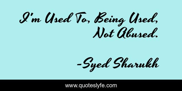 "Syed Sharukh Quotes." Quoteslyfe.com, 2025. Mon. 08 Dec. 2025. <https://www.quoteslyfe.com/quote/I-m-Used-To-Being-Used-Not-210189>.