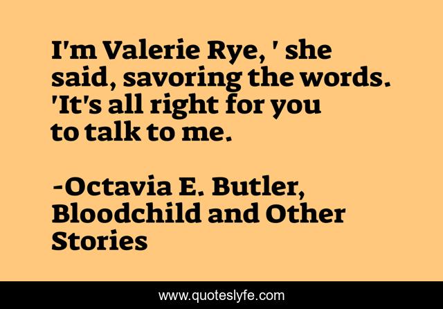 "Octavia E. Butler, Bloodchild and Other Stories Quotes." Quoteslyfe.com, 2025. Mon. 08 Dec. 2025. <https://www.quoteslyfe.com/quote/I-m-Valerie-Rye-she-said-savoring-185253>.