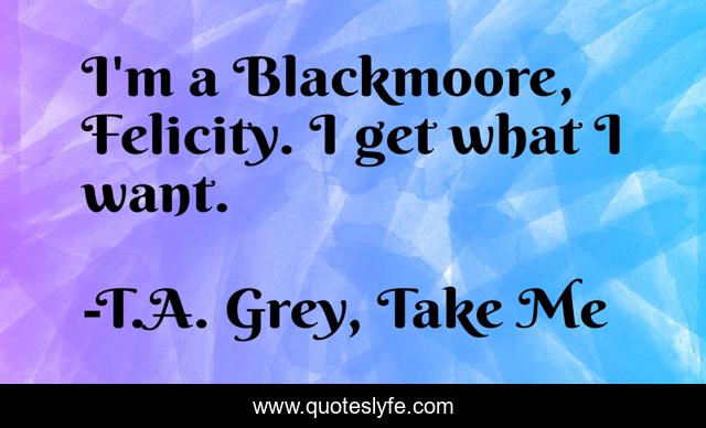 "T.A. Grey, Take Me Quotes." Quoteslyfe.com, 2025. Fri. 05 Dec. 2025. <https://www.quoteslyfe.com/quote/I-m-a-Blackmoore-Felicity-I-get-132507>.