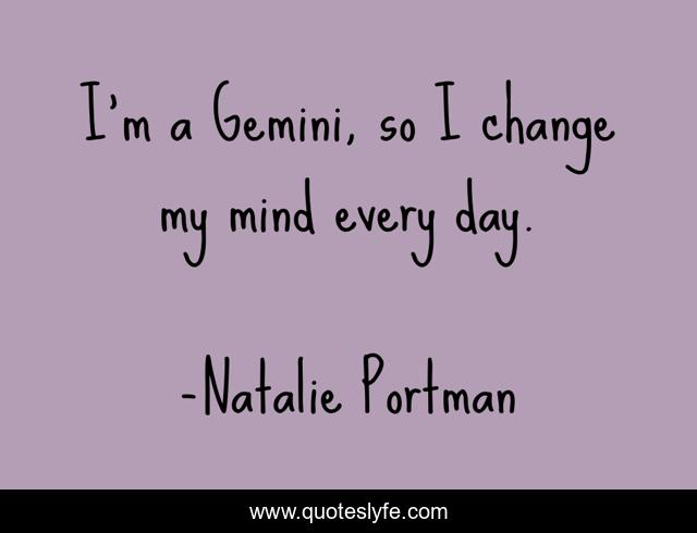 This page presents the quote "I'm a Gemini, so I change my mind every day.". Author of this quote is Natalie Portman. This quote is about every day, mind, day,.