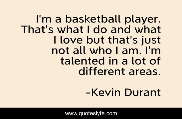 This page presents the quote "I'm a basketball player. That's what I do and what I love but that's just not all who I am. I'm talented in a lot of different areas.". Author of this quote is Kevin Durant. .