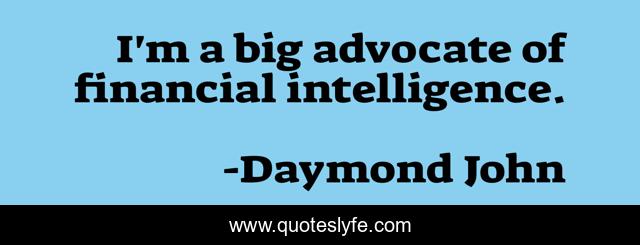 This page presents the quote "I'm a big advocate of financial intelligence.". Author of this quote is Daymond John. This quote is about big, financial, finance,.