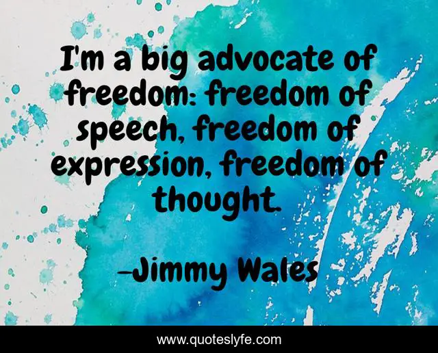 This page presents the quote "I'm a big advocate of freedom: freedom of speech, freedom of expression, freedom of thought.". Author of this quote is Jimmy Wales. This quote is about thought, freedom of speech,.