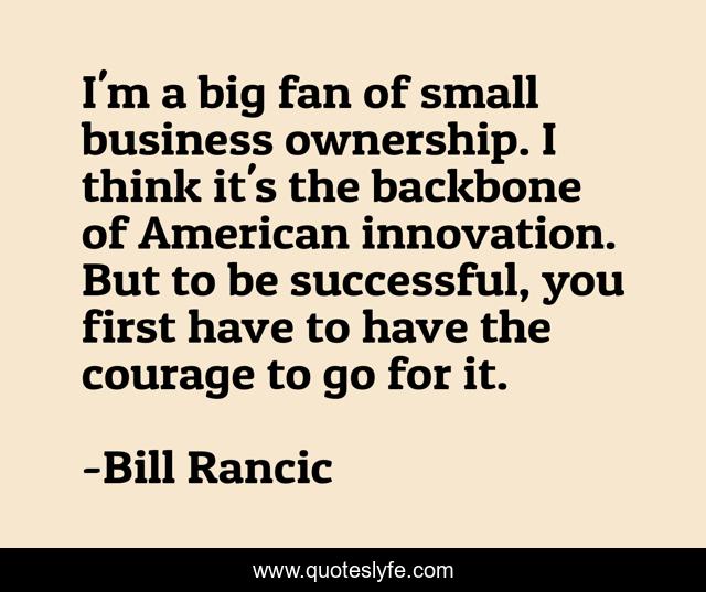 This page presents the quote "I'm a big fan of small business ownership. I think it's the backbone of American innovation. But to be successful, you first have to have the courage to go for it.". Author of this quote is Bill Rancic. This quote is about courage, innovation,.