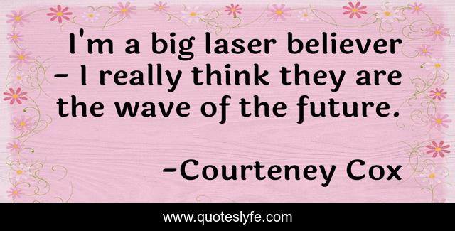 This page presents the quote "I'm a big laser believer - I really think they are the wave of the future.". Author of this quote is Courteney Cox. This quote is about laser, think, wave,.