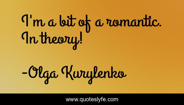 This page presents the quote "I'm a bit of a romantic. In theory!". Author of this quote is Olga Kurylenko. This quote is about bit, theory,.
