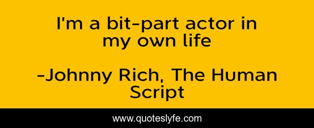 "Johnny Rich, The Human Script Quotes." Quoteslyfe.com, 2025. Sat. 06 Dec. 2025. <https://www.quoteslyfe.com/quote/I-m-a-bit-part-actor-in-141749>.