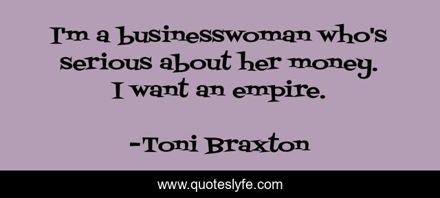 This page presents the quote "I'm a businesswoman who's serious about her money. I want an empire.". Author of this quote is Toni Braxton. This quote is about empire, her,.