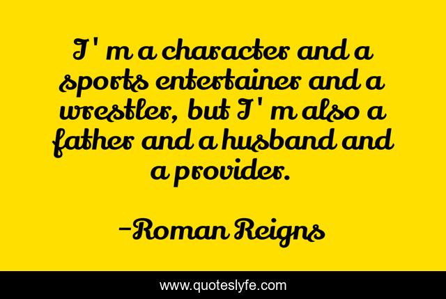 This page presents the quote "I'm a character and a sports entertainer and a wrestler, but I'm also a father and a husband and a provider.". Author of this quote is Roman Reigns. This quote is about father, character, husband,.