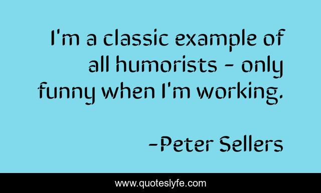 This page presents the quote "I'm a classic example of all humorists - only funny when I'm working.". Author of this quote is Peter Sellers. This quote is about example, working, classic,.