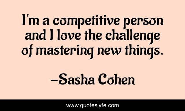 This page presents the quote "I'm a competitive person and I love the challenge of mastering new things.". Author of this quote is Sasha Cohen. This quote is about challenge, new things, love, affection,.
