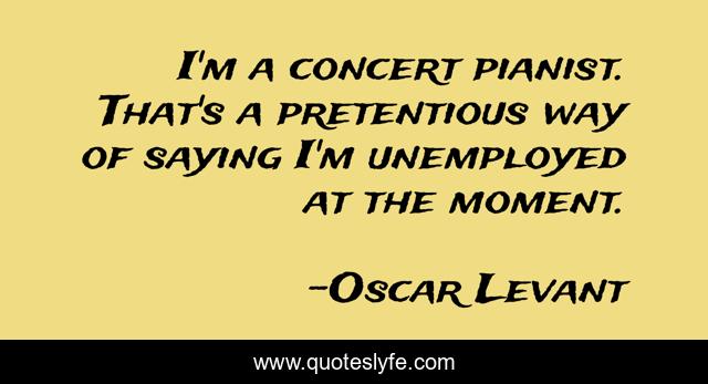 This page presents the quote "I'm a concert pianist. That's a pretentious way of saying I'm unemployed at the moment.". Author of this quote is Oscar Levant. This quote is about professions, work,.