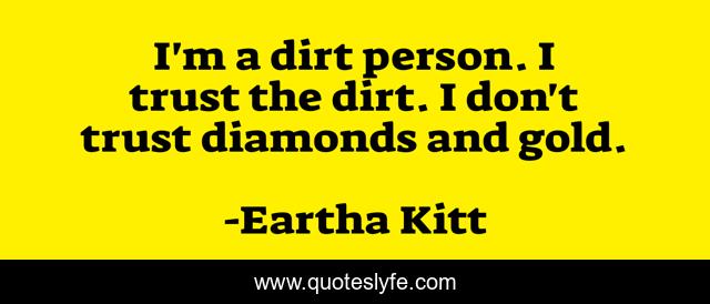 This page presents the quote "I'm a dirt person. I trust the dirt. I don't trust diamonds and gold.". Author of this quote is Eartha Kitt. This quote is about person, gold, diamonds,.