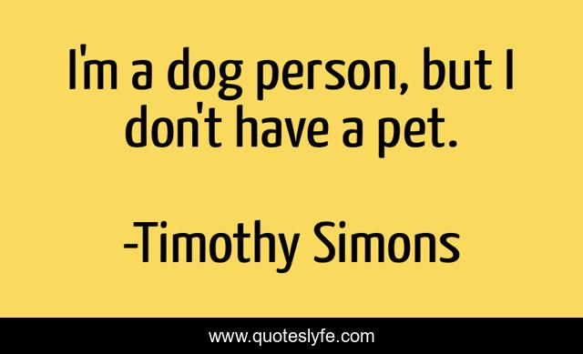 This page presents the quote "I'm a dog person, but I don't have a pet.". Author of this quote is Timothy Simons. This quote is about person, dog,.