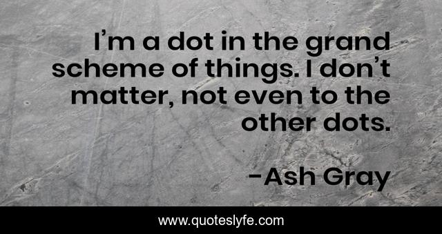 This page presents the quote "I’m a dot in the grand scheme of things. I don’t matter, not even to the other dots.". Author of this quote is Ash Gray. This quote is about humorous, spirituality, humor, authors,.