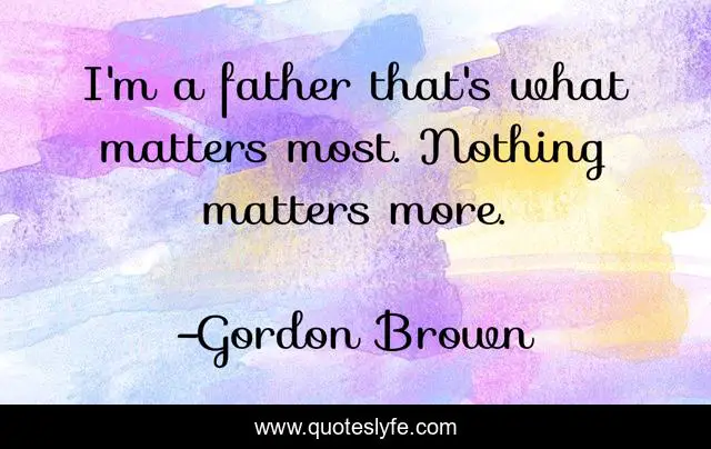 This page presents the quote "I'm a father that's what matters most. Nothing matters more.". Author of this quote is Gordon Brown. This quote is about nothing, matters, father,.
