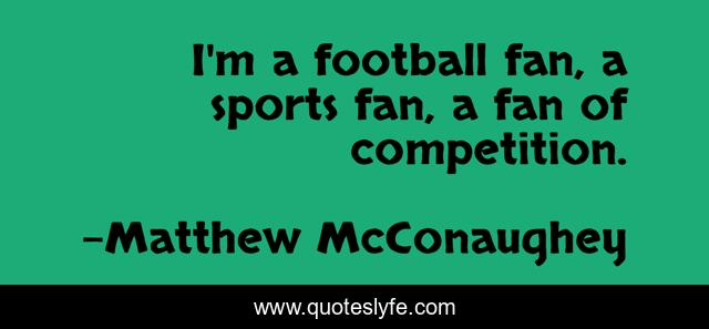 This page presents the quote "I'm a football fan, a sports fan, a fan of competition.". Author of this quote is Matthew McConaughey. This quote is about football, fan, competition,.