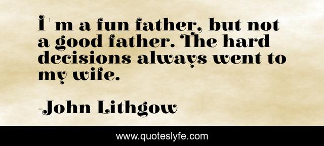 This page presents the quote "I'm a fun father, but not a good father. The hard decisions always went to my wife.". Author of this quote is John Lithgow. This quote is about good, father, wife,.