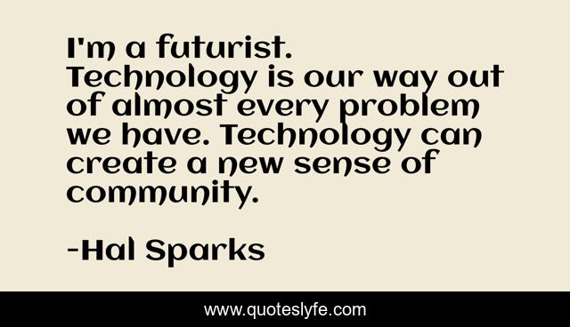 This page presents the quote "I'm a futurist. Technology is our way out of almost every problem we have. Technology can create a new sense of community.". Author of this quote is Hal Sparks. This quote is about new, problem, community,.