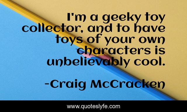 This page presents the quote "I'm a geeky toy collector, and to have toys of your own characters is unbelievably cool.". Author of this quote is Craig McCracken. This quote is about toy, collector, toys,.