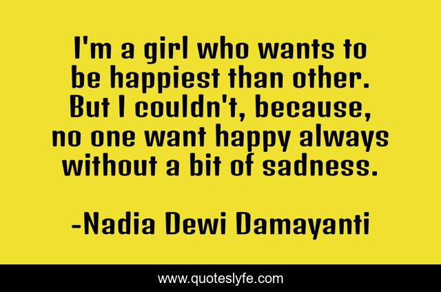 I'm a girl who wants to be happiest than other. But I couldn't, because, no one want happy always without a bit of sadness.