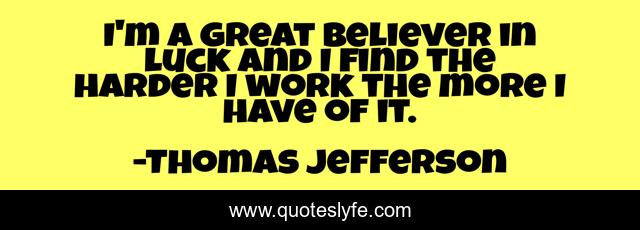 This page presents the quote "I'm a great believer in luck and I find the harder I work the more I have of it.". Author of this quote is Thomas Jefferson. .
