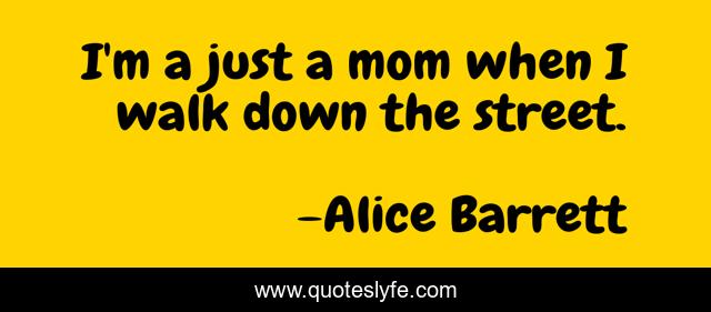 This page presents the quote "I'm a just a mom when I walk down the street.". Author of this quote is Alice Barrett. This quote is about down, street, walk,.