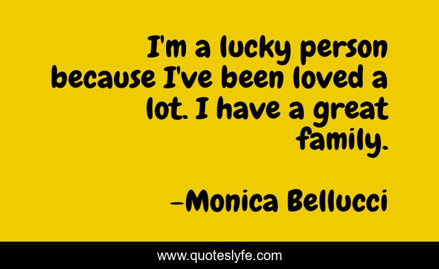 This page presents the quote "I'm a lucky person because I've been loved a lot. I have a great family.". Author of this quote is Monica Bellucci. This quote is about loved, great, lucky,.