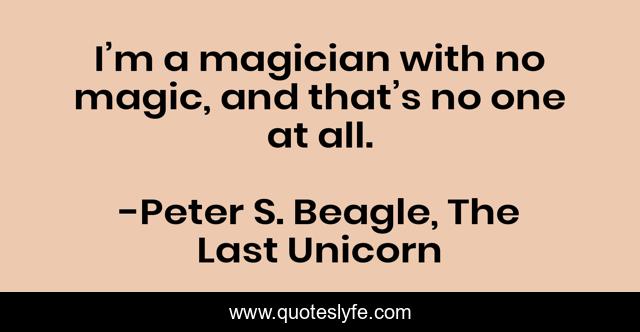 "Peter S. Beagle, The Last Unicorn Quotes." Quoteslyfe.com, 2025. Mon. 08 Dec. 2025. <https://www.quoteslyfe.com/quote/I-m-a-magician-with-no-magic-134012>.