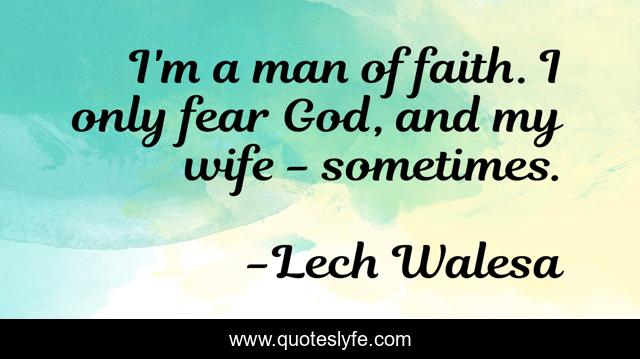 This page presents the quote "I'm a man of faith. I only fear God, and my wife - sometimes.". Author of this quote is Lech Walesa. This quote is about faith, fear, wife,.