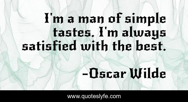 This page presents the quote "I'm a man of simple tastes. I'm always satisfied with the best.". Author of this quote is Oscar Wilde. This quote is about living, lifestyle, oscar-wilde,.