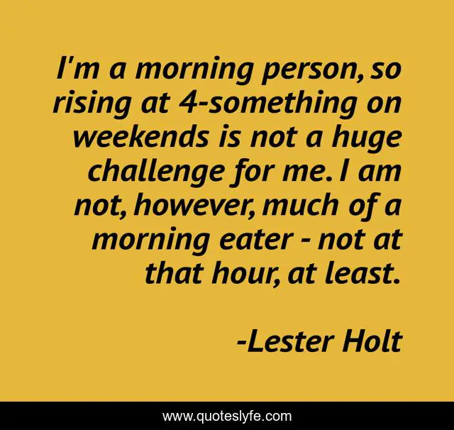 "Lester Holt Quotes." Quoteslyfe.com, 2025. Sat. 06 Dec. 2025. <https://www.quoteslyfe.com/quote/I-m-a-morning-person-so-rising-298194>.