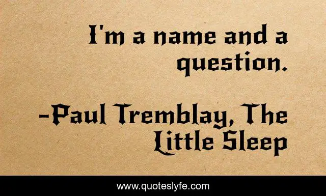 "Paul Tremblay, The Little Sleep Quotes." Quoteslyfe.com, 2025. Sat. 06 Dec. 2025. <https://www.quoteslyfe.com/quote/I-m-a-name-and-a-question-171331>.