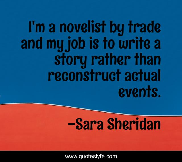 This page presents the quote "I'm a novelist by trade and my job is to write a story rather than reconstruct actual events.". Author of this quote is Sara Sheridan. This quote is about fiction, reality, methodological-naturalism, writer, writing, job, novelist, research, events,.