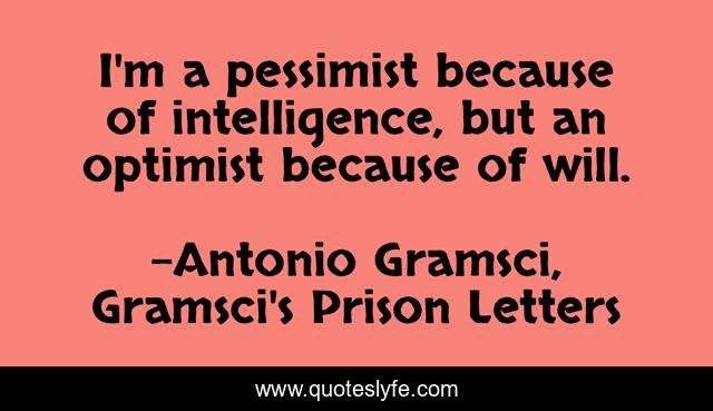 "Antonio Gramsci, Gramsci's Prison Letters Quotes." Quoteslyfe.com, 2025. Sat. 06 Dec. 2025. <https://www.quoteslyfe.com/quote/I-m-a-pessimist-because-of-intelligence-41713>.